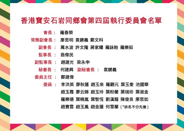 香港寶安石岩同鄉會第四屆執行委會員名單